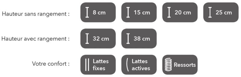 Choisissez la hauteur de votre sommier et son confort. Nous